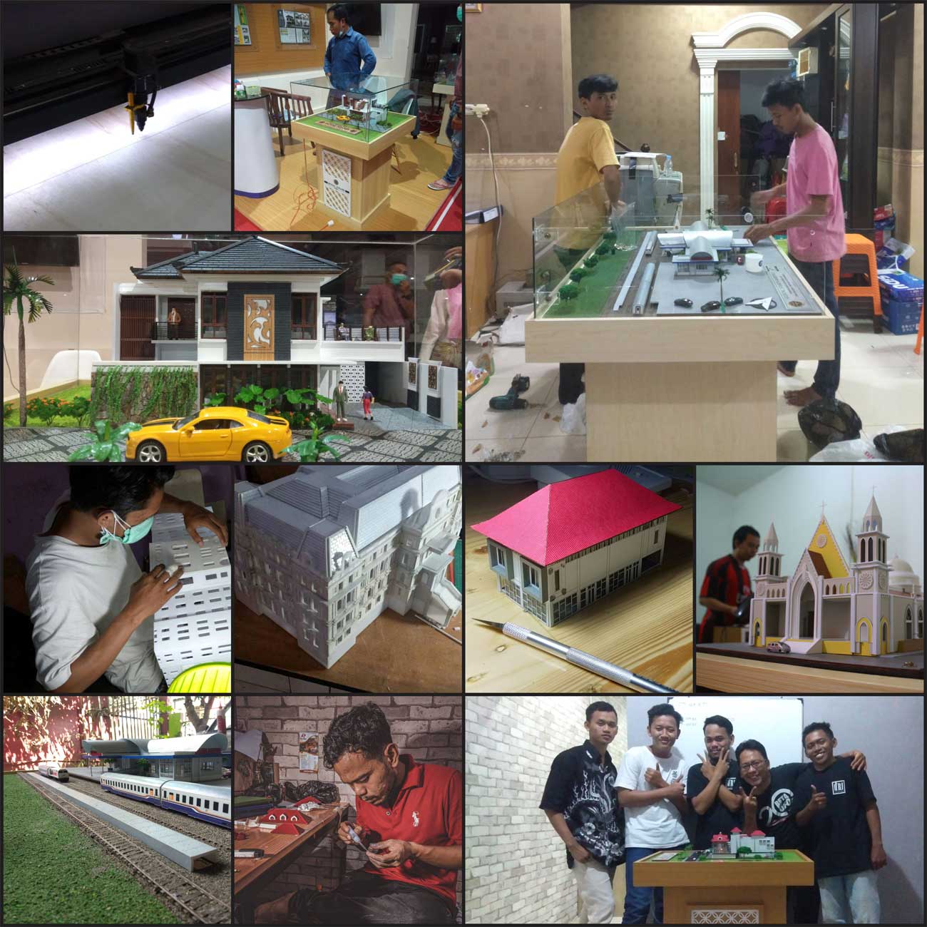 Bengkel Maket melayani pembuatan maket seperti Maket Gedung, Maket Kawasan, Maket Perumahan, Maket Perkantoran,Maket Pabrik, Maket Pertambangan, Maket Diorama, Maket Rumah Sakit, Maket Bandara, Maket Pelabuhan, Maket Stasiun, Maket Terminal, Maket Kampus, Maket Landscape, Maket PLTU, Maket PLTA, Maket Jembatan, Maket Apartemen, Maket Simulasi, Maket Hotel, Maket Villa, Maket Mall, Maket Ruko, Maket Stadion, Maket Waduk, Maket Kontur, Maket Masjid, Maket Gereja, Maket Edutorium, Maket Water Park, Maket Gedung Monumental, Maket Pasar, Maket Lepas Pantai, Maket Kilang. Pekerjaan diselesaikan presisi, rapi dan tepat waktu.